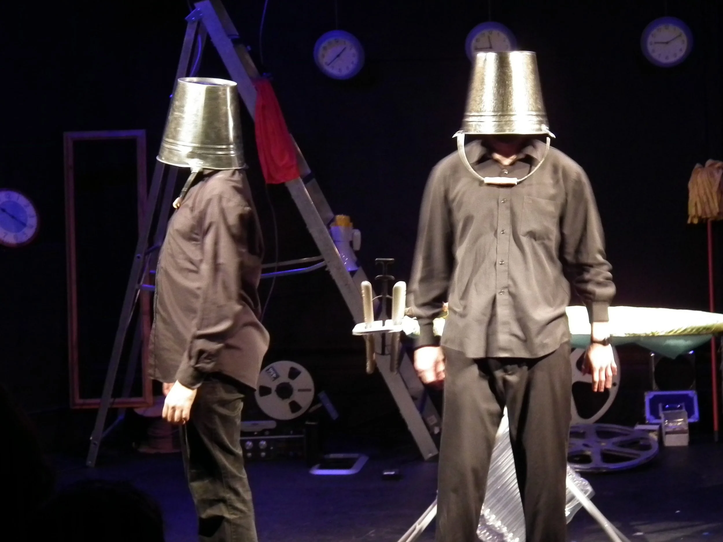 Alex et David ont créé « CLOCKS ! » dans le cadre d'une résidence créative pour enfants à l'Institut français. Il s'agit d'une adaptation hilarante d'un conte inconnu de Jules Verne, d'une durée de 50 minutes. La complicité du duo et la nature excentrique de leur double numéro les ont amenés à s'attaquer à l'ensemble de l'œuvre de Jules Verne, donnant ainsi naissance à Around Jules Vernes in 80 minutes.